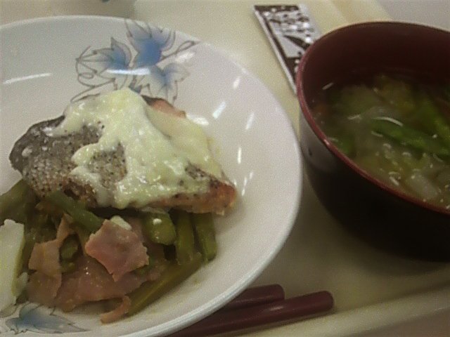 姫路に到着した6月30日の夕飯は、鮭でした。