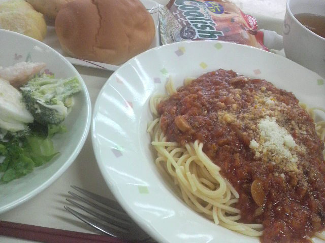 昼飯は、ミートソーススパゲッティ。