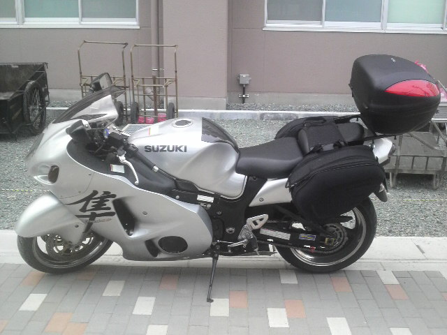 隼にサイドバッグも取り付け、帰省仕様ですw