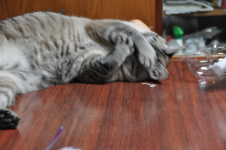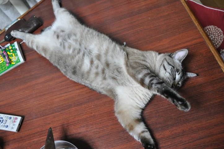 寝てると毎回、空を飛んでる夢を見る…という訳ではなかろうが、何で前足伸ばしてるのかね?w