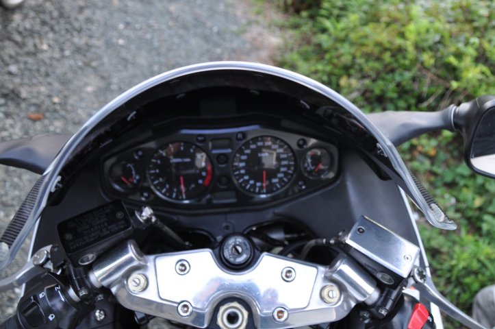 スクリーンを交換することで、この部分のクリアランスが増え、かなりメーターが見易くなります。