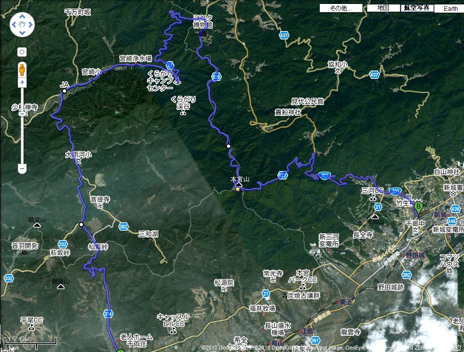 今回は逆順で、新城を北上して国道301号から本宮山スカイラインへ。