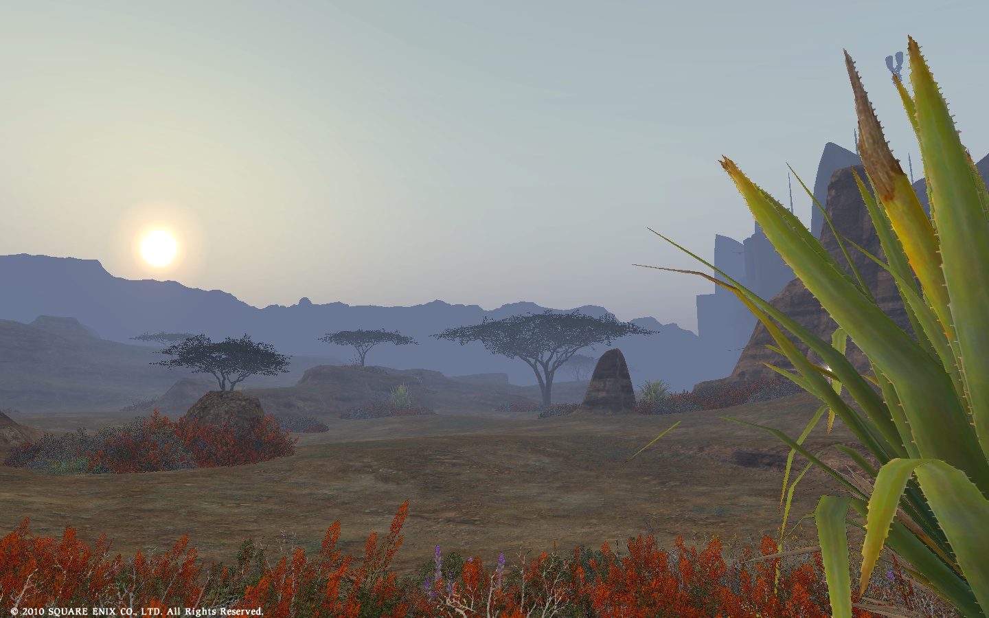 ウルダハの街から出たところの中央ザナラーンに、朝日が昇るところ。
