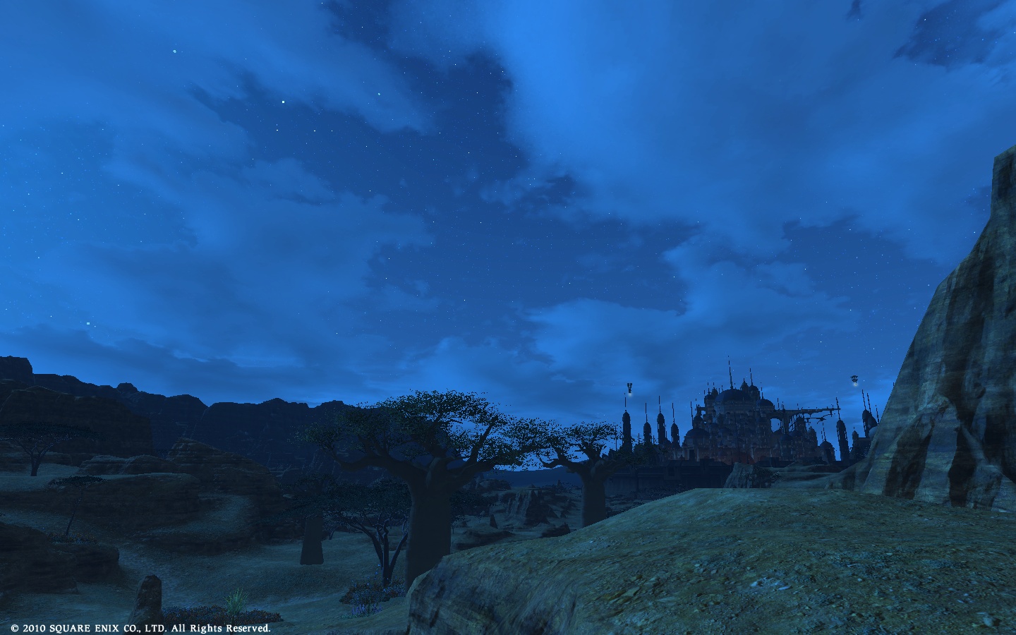 ウルダハの外観を撮影していたところ、空がタイヘン綺麗だと思いましたね。
