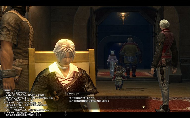 カードゲームで勝ったら、サンクレッドの欲する情報を渡すのを条件に勝負してたらしいのですが、
