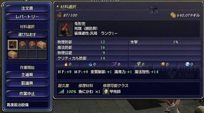 総面と黒漆については、クラフターのランクが足りないため、材料を揃えても自作できません。