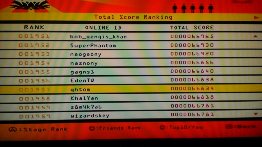 ふと、オンラインでランキングが見れることに気付いたので、このステージの分を見たところ、