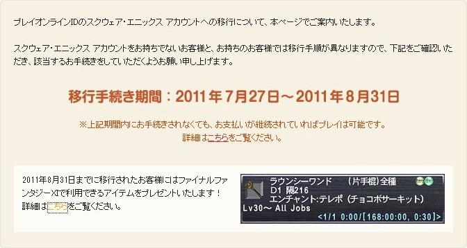 >移行手続きを行なわれない場合は、2011年7月末日をもってご利用が停止いたします。