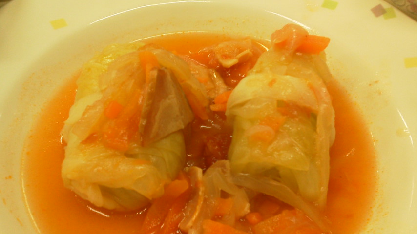 夕飯は、ロールキャベツトマトソース煮。