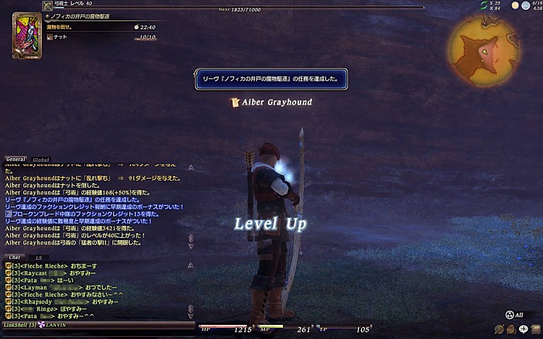 最後のリージョナルリーヴを完遂したところで、弓術士がLv.40になりました!ヽ(=▽=)ノ