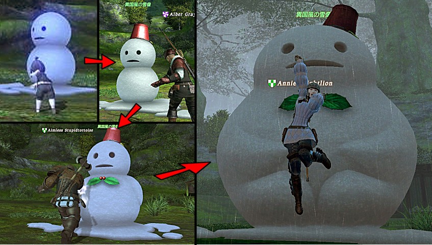 フィーさんとこからも1枚SSを借りてきて、雪像の変遷をたどってみると、