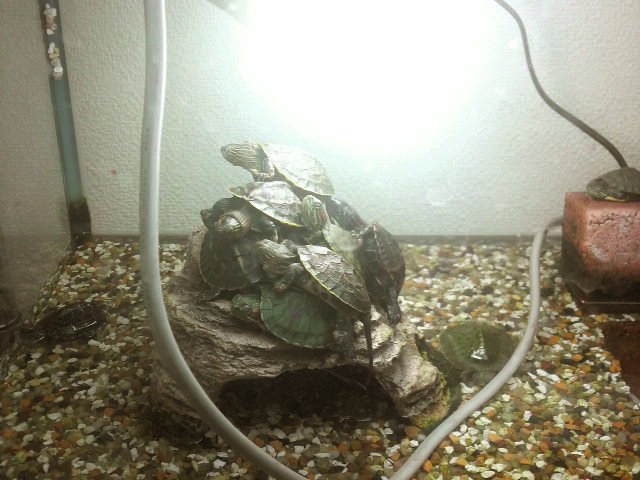 甲羅干ししたい亀たちが、電球の下に山積みw
