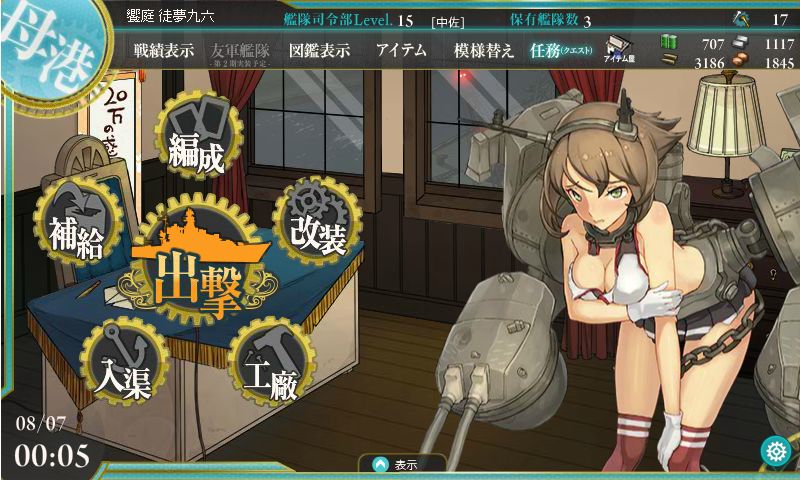 駆逐艦1隻でゲームを開始して、資源を消費しつつ建造した艦娘(かんむす)や、