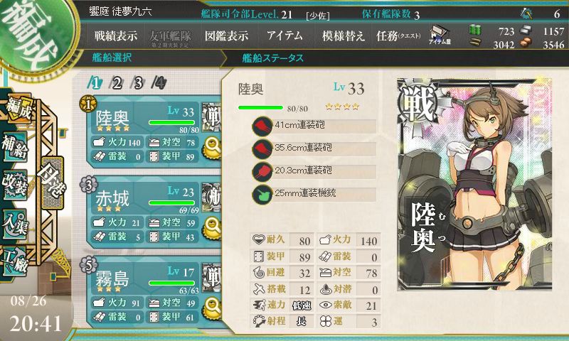 旗艦陸奥もLv.33になり、性能も申し分ないと思うのだが…。